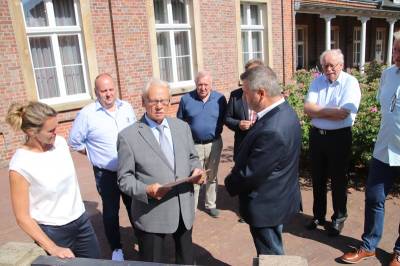 Nordkirchen. „Es freut mich, dass ich im Namen des CDU Gemeindeverbandes Willi Nägeler für sein kommunalpolitisches Lebenswerk mit der Goldenen Ehrennadel auszeichnen durfte“, erklärt der Vorsitzende Rainer Bolte. „Seit 1969 war Willi Nägeler als Mitglied des Rates der Gemeinde Nordkirchen und von 1991 bis 1999 als Bürgermeister und bis 2004 als dessen Stellvertreter aktiv. Nicht nur im Rat, auch in den CDU-Parteivorständen der Gemeinde und des Kreises sowie als Kreistagsabgeordneter hinterließ Nägeler während dieser Zeit deutliche Spuren seines Wirkens. Auch nach seinem Rückzug aus der aktiven Politik 2009 stand Nägeler noch lange seinem Gemeindeverband mit Rat und Tat zur Seite, so Bolte weiter. Welch besondere Ehrung damit verbunden ist, zeigt sich daran, dass die Goldene Ehrennadel zum ersten Mal im Gemeindeverband vergeben wurde. Rainer Bolte fand in seiner Ansprache entsprechend wertschätzende Worte über die Verdienste des Geehrten, der seit 1992 auch Träger des Bundesverdienstkreuzes ist: „Willi Nägeler hat einen überaus großen persönlichen Einsatz gezeigt, der immer am Wohl der Gemeinde Nordkirchen orientiert war. Dabei scheute er keine Konflikte, trat mutig und klar für seine Überzeugungen ein. Er arbeitete aber auch konstruktiv und vertrauensvoll mit Vertretern anderer politischer Fraktionen zusammen, um beste Lösungen für seine Heimat zu erreichen. Sein umfangreiches und vielseitiges politisches, soziales sowie weiteres ehrenamtliches Wirken über viele Jahrzehnte hinweg diente dem Ansehen und Wohl der Gemeinde Nordkirchen außerordentlich. Sein Engagement überstieg das übliche Maß bei weitem.“