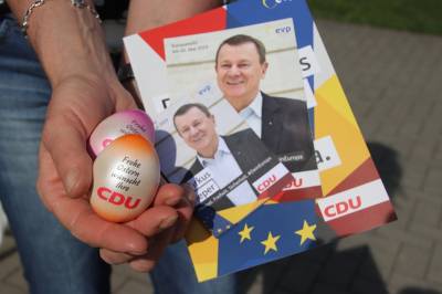 Start war am Gründonnerstag vor dem K&K Markt in Südkirchen. Dort verteilten CDU Mitglieder gefärbte Ostereier und wünschten den vorbeikommenden Bürgerinnen und Bürgern ein Frohes Osterfest 2019.