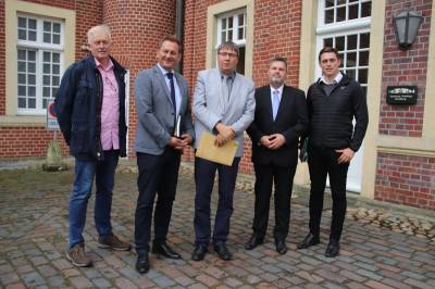 Der CDU-Landtagsabgeordnete Dietmar Panske und Vertreter der CDU Nordkirchen um den Gemeindeverbandsvorsitzenden Rainer Bolte nutzten das sommerliche Wetter für einen Besuch bei Klaus-W. Gratzfeld, dem Verwaltungsleiter der Fachhochschule für Finanzen (FHF).