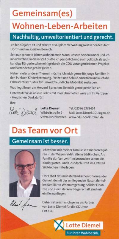 Ihre Kandidaten für folgende Straßen im Wahlbezirk Nr.10!