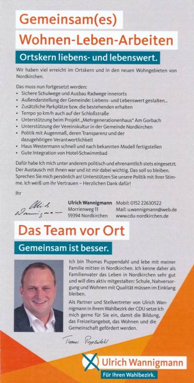 Ihre Kandidaten für folgende Straßen im Wahlbezirk Nr.6!